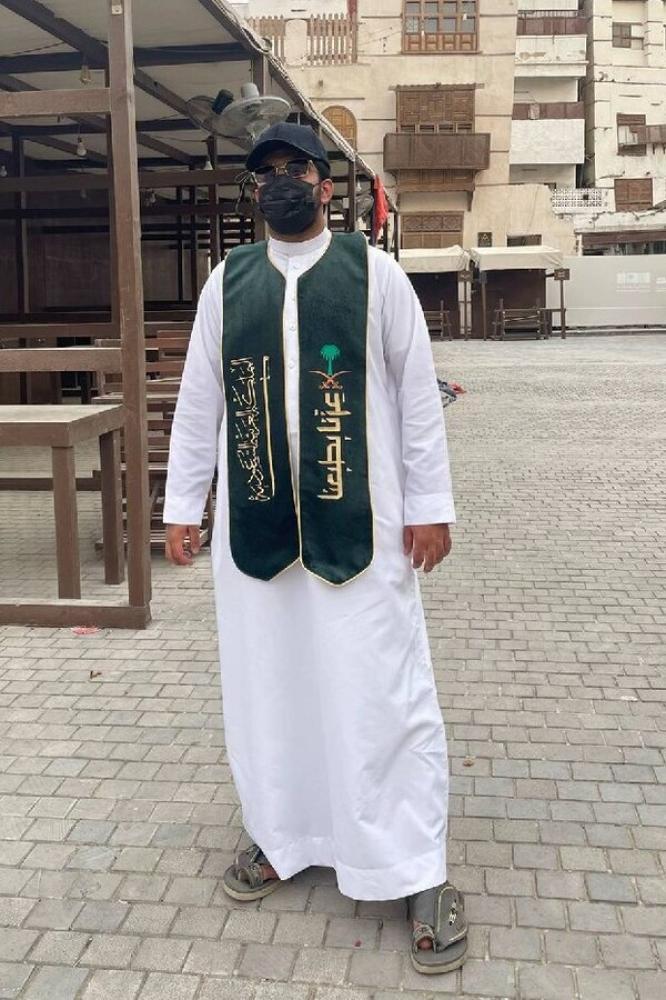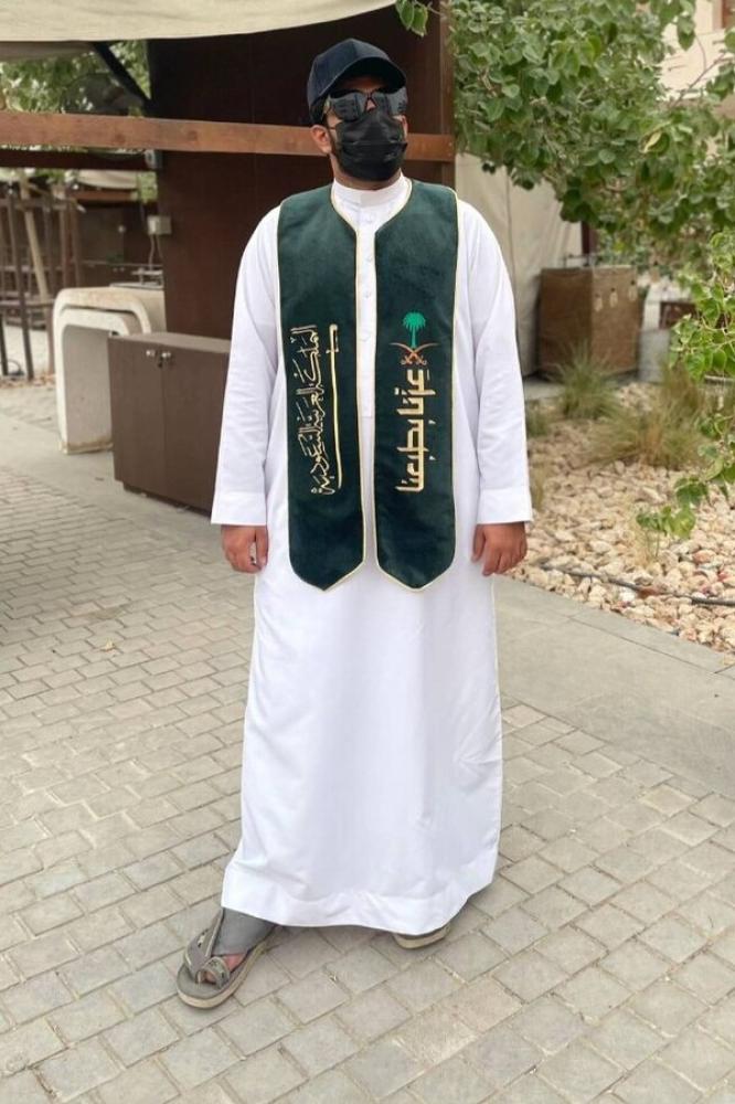 - التطريز: شعار السيفين والنخلة وعبارة عزنا بطبعنا مطرزة بدقة عالية.