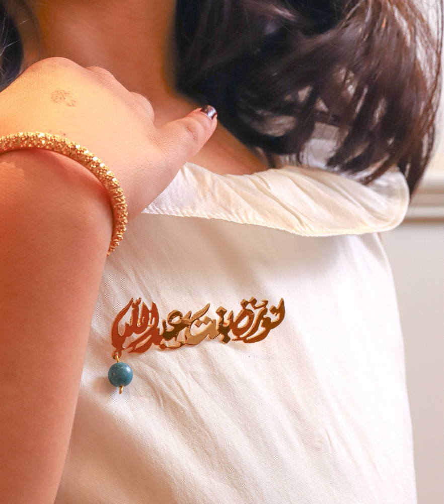بروش يحمِل الإسم مع إضافة لؤلؤة يتم صياغة الاسم حسب طلبك .. وذلك بأيدي صائغين مهرة في المصنع الخاص بـ متجر كيان.
