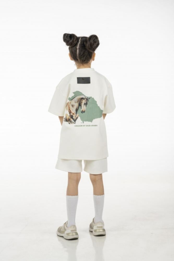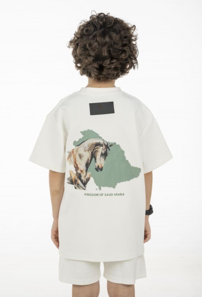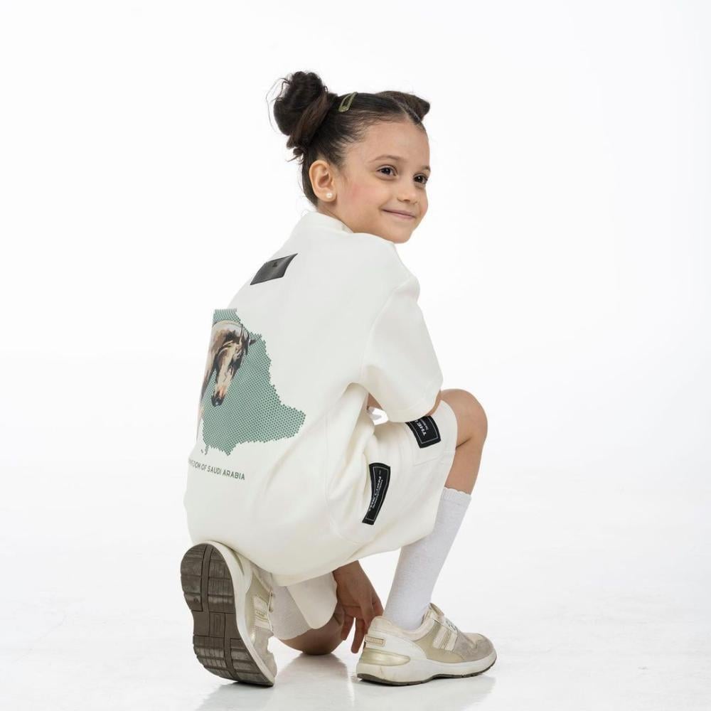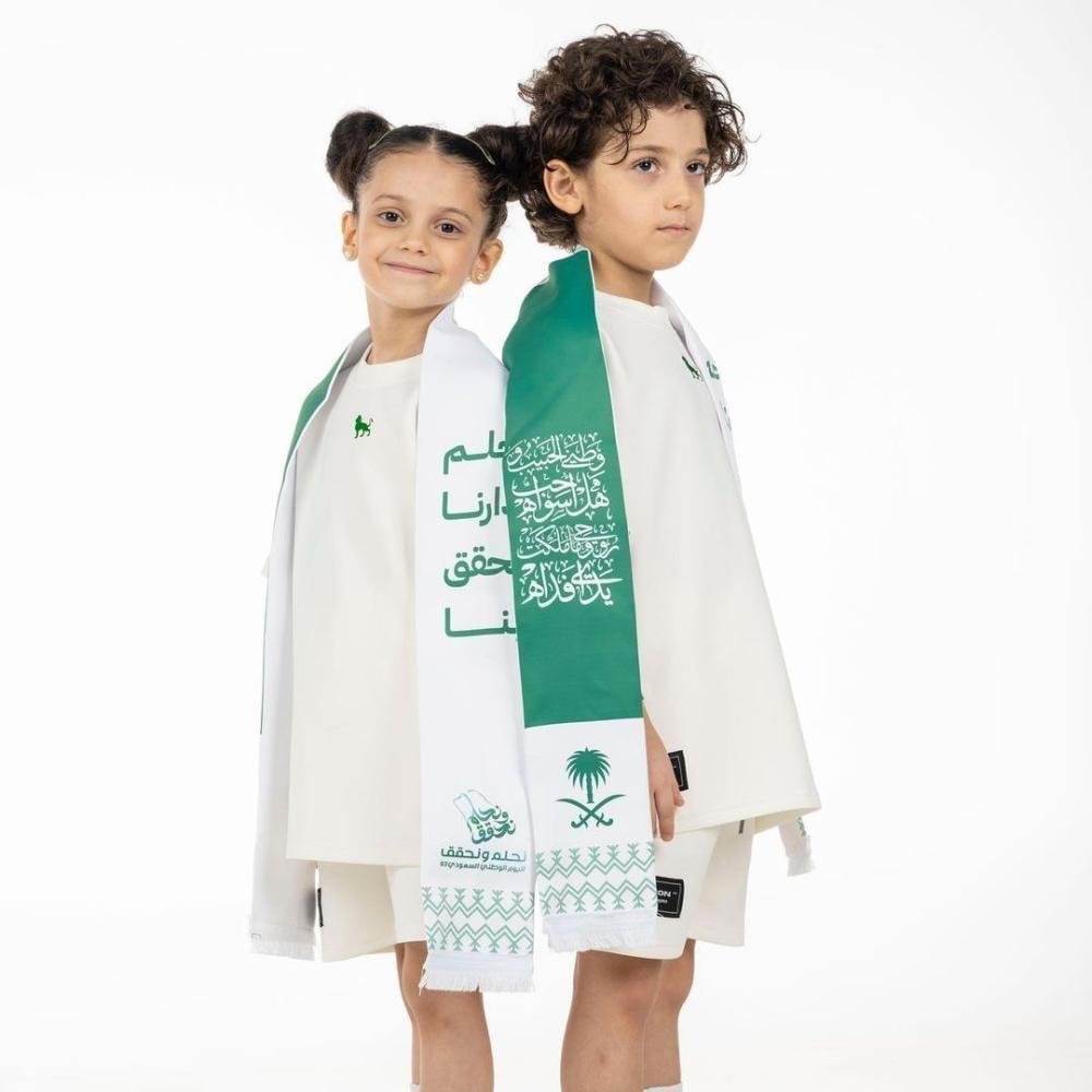 مكونات الطقم تشيرت + شورت بشعار اليوم الوطني السعودي
