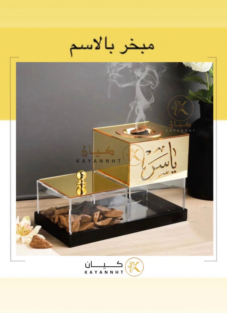 - صندوق أنيق لحفظ العود والبخور+ عبارة من اختيارك