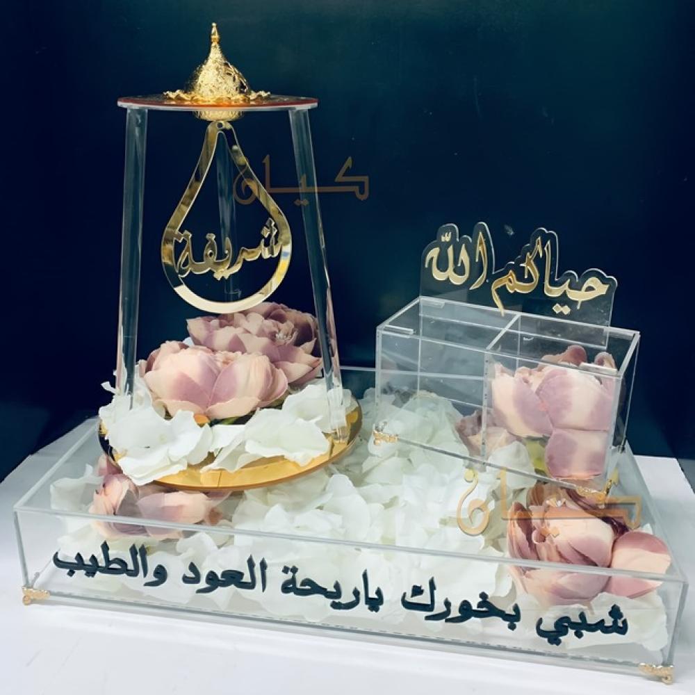 مبخرة اعراس فاخرة مخصصة بالاسم مع ورد صناعي أنيق، تضيف لمسة راقية للمناسبات والهدايا.