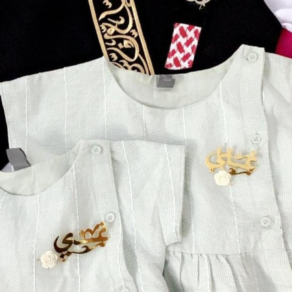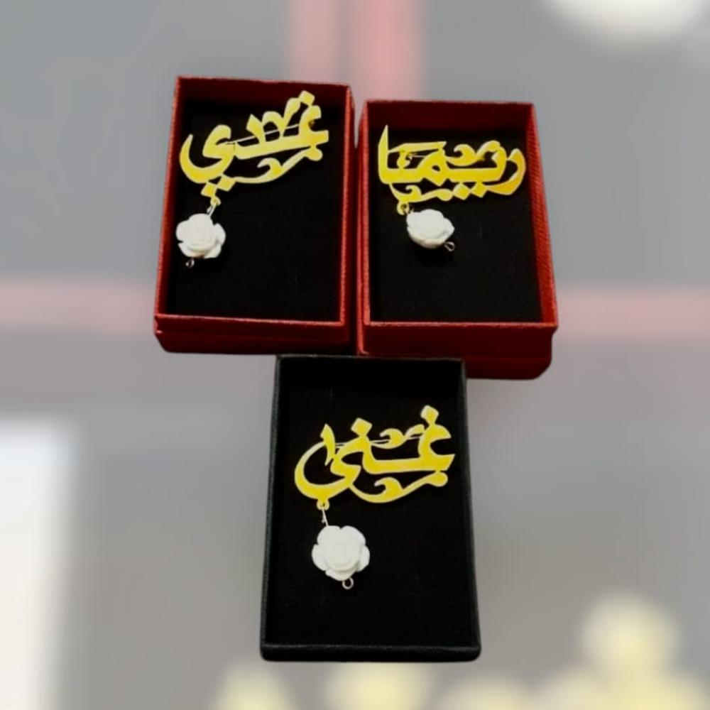 بروشات اطفال. مطليه بتصميم الإسم مع إضافة وردة, مصنوع بإحتراف يدوي وليزر.