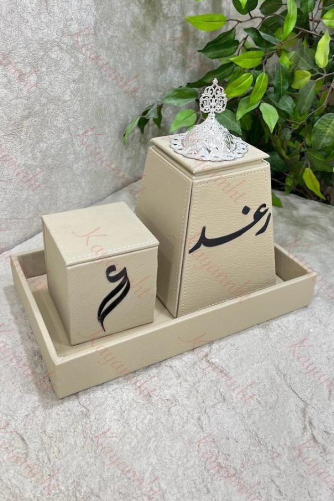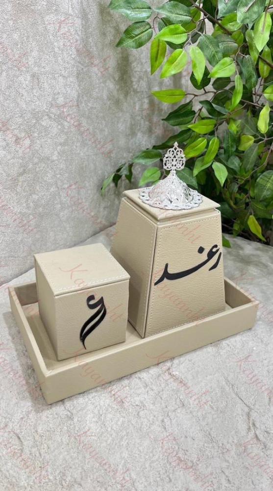 طقم مبخره جلد فاخره بالاسم والحروف حسب الطلب.