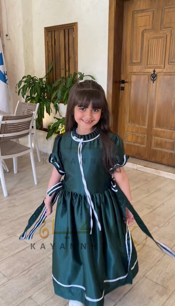 ** عند الرغبه باختيار طقم للبنت والولد -يرجى اضافه الفستان للسله بعدها اضافه منتج سديري البشت اخضر للسله وتعبئة الخيارات المطلوبه