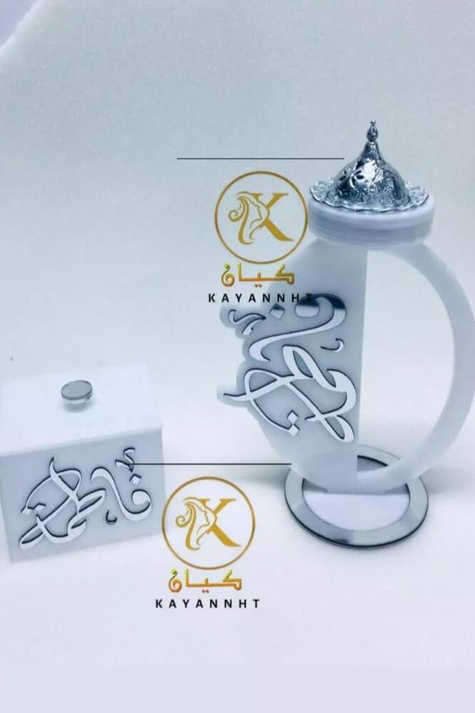 طقم مباخر شخصية فاخر بتصميم عصري يُنفذ خصيصاً بالاسم المطلوب.