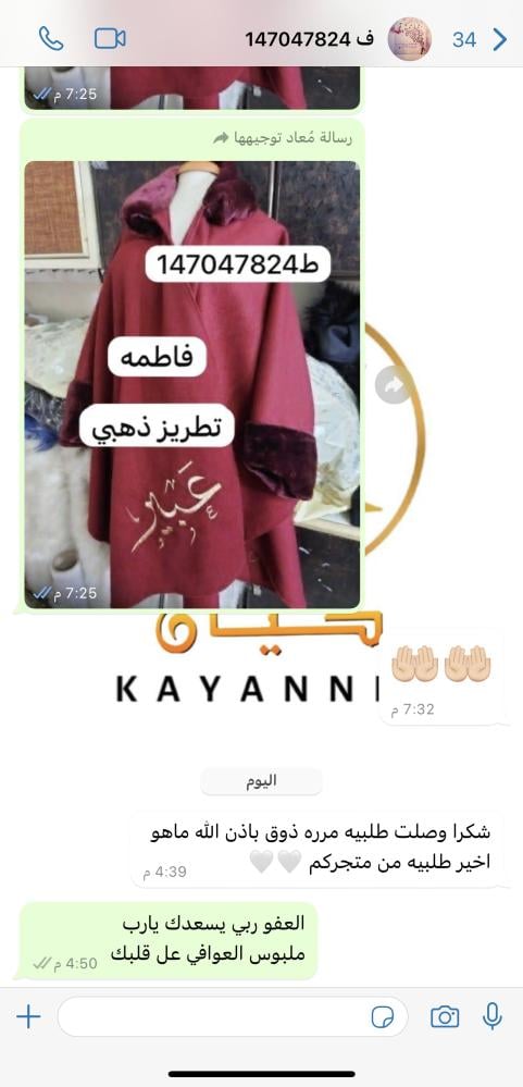 مقاساته: فري سايز يلبس جميع المقاسات الكبيرة.