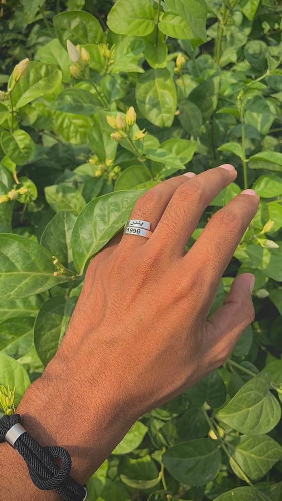 خاتم تاريخ مصنوع من الفضه الخالص ضمان الون يحمل اسمك وتاريخك المفضل