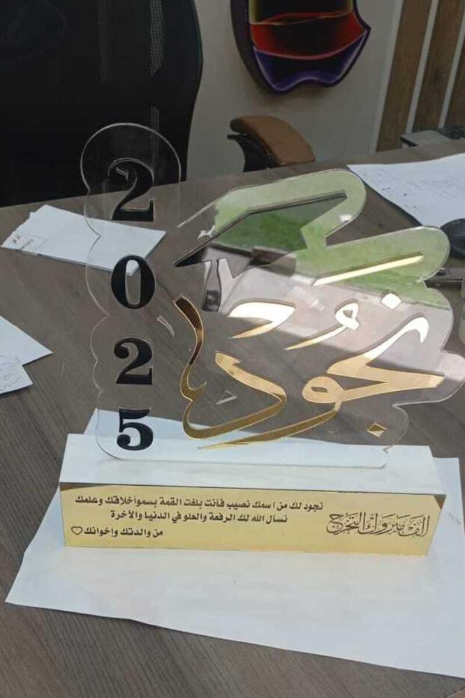 درع تخرج تصميم حديث: دروع تذكاريه أنيقه ومميز للاحتفال بالإنجازات العضيمه.