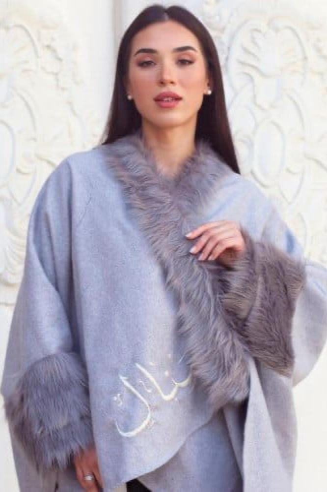 - الوانه: شال لون مقارب للرمادي، مع، تطريز ذهبي، او، تطريز فضي،