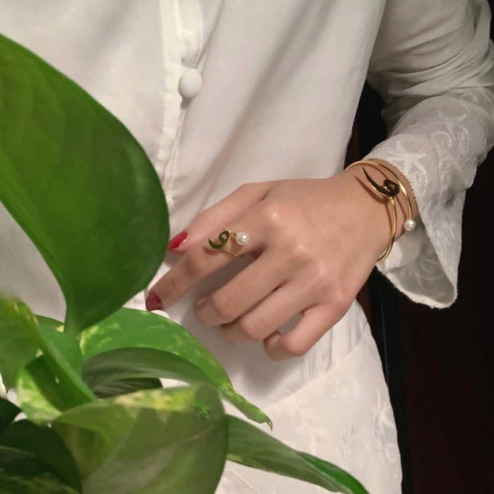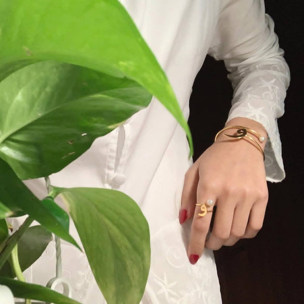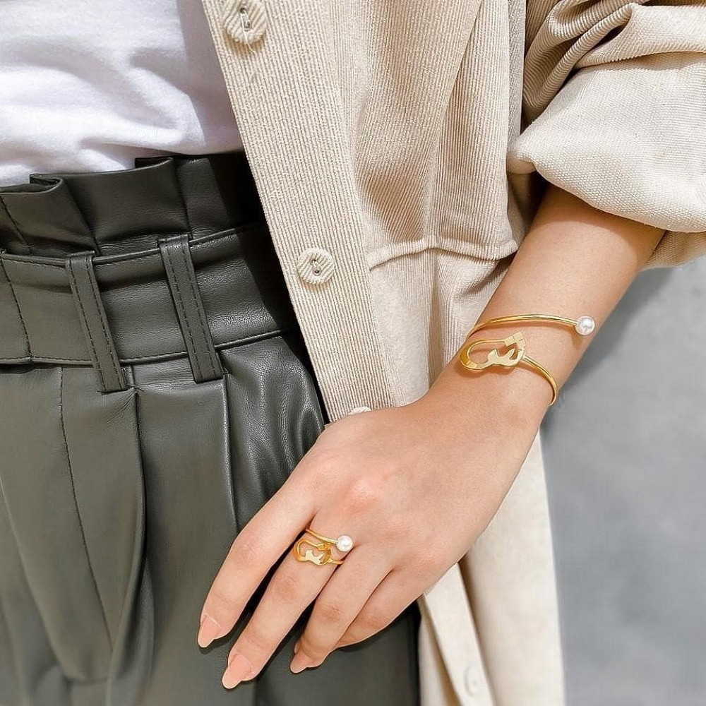 1/اضافة الاسم المطلوب حسب الطلب، ويتوفؤ قطعتين خاتم واسواره.