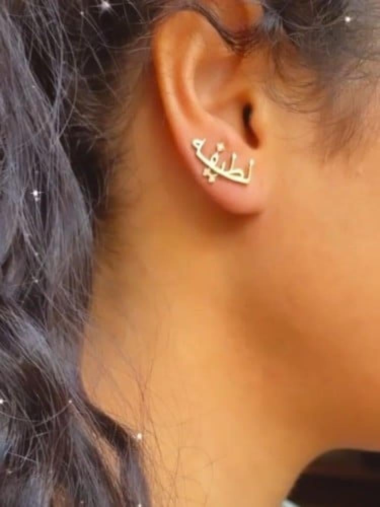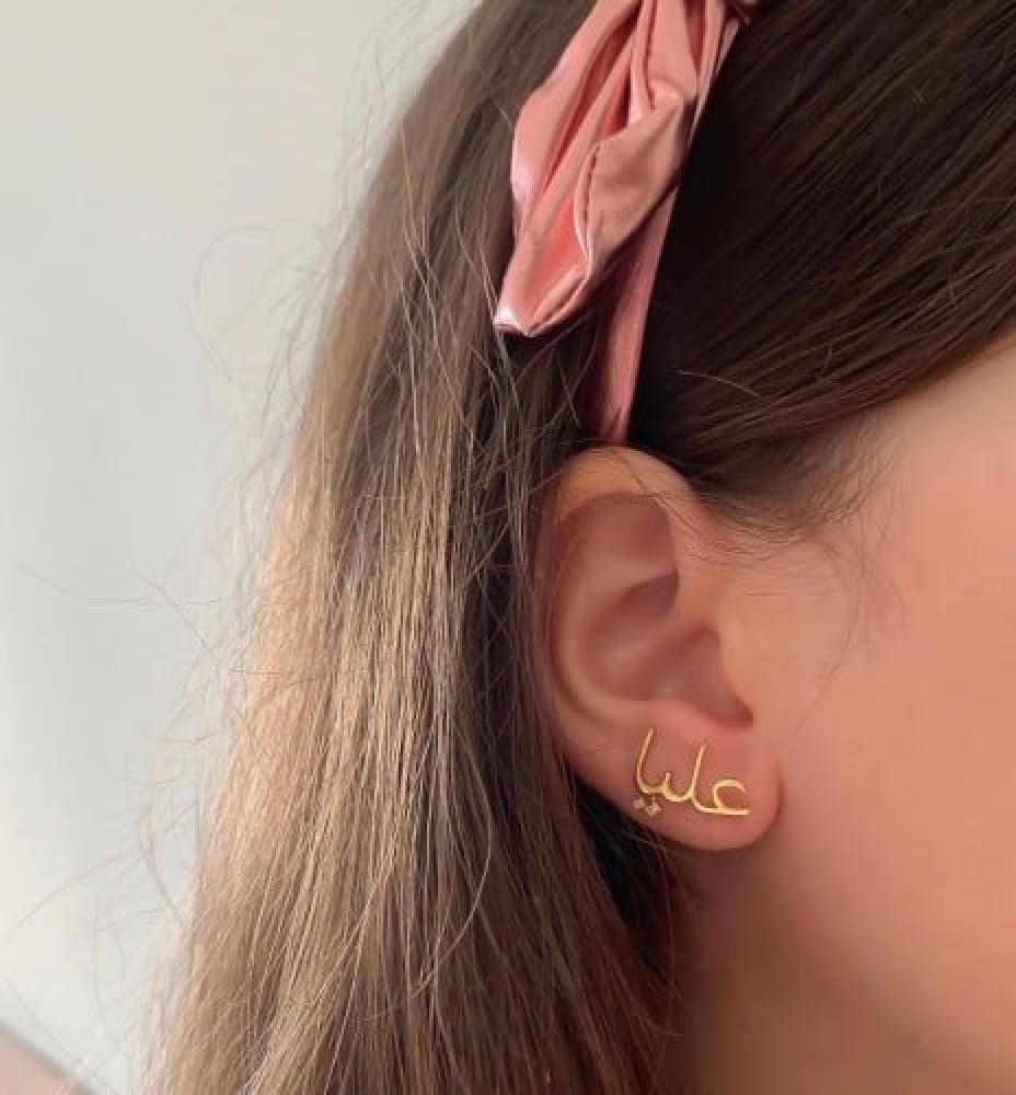 أناقة لك ولمن تحبون بالاسم تفاصيل المنتج:عدد القطع 2حلق للاذنين.متوفر باللونين ذهبي او فضي.طلاء ذهب عيار 21.مضمون مايتغير لونه.تاتيكم بتغليف شيك وجميل.المده من 3-4 ايام يوصلك
