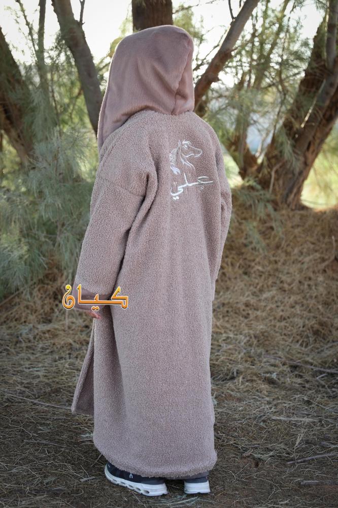 نوع القماش : صوف محبوب مع فرو ارنب صناعية من جوى.