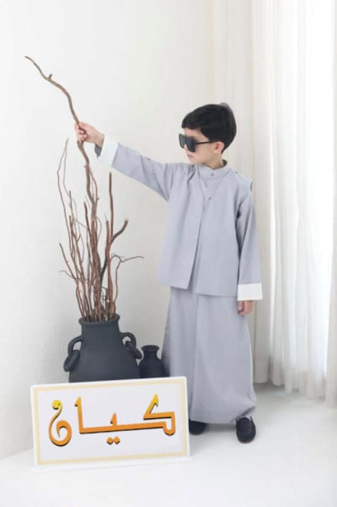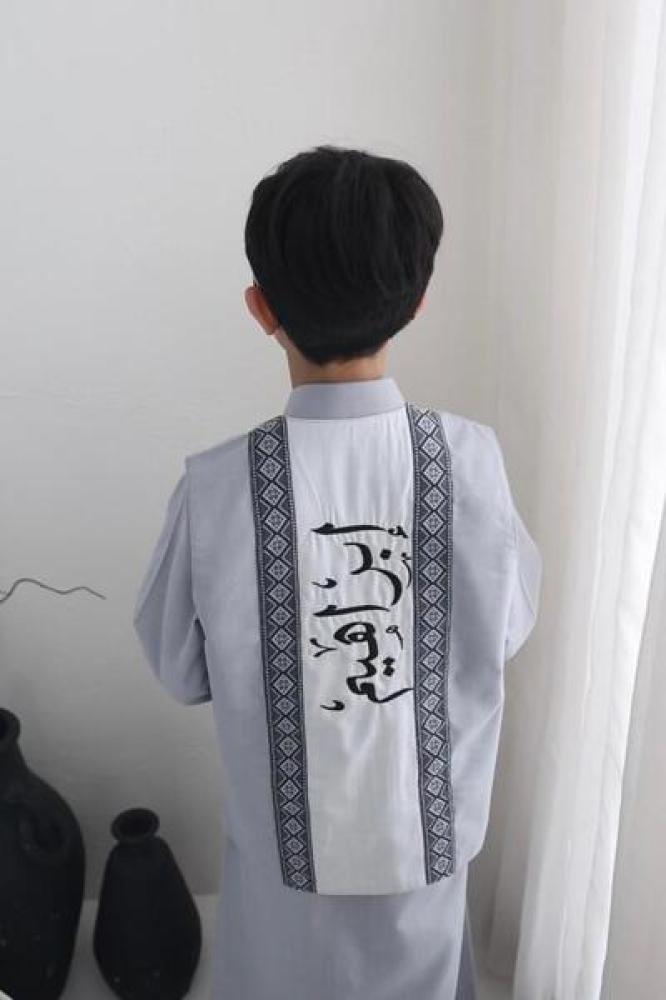 نقدم لكم طقم أنيق يتكون من ثوب مع سديري باسم، باضافة لمسة عصريه تليق باميرك المدلل.