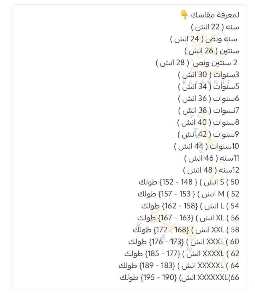 *لسهوله أخذ القياس /يرجى سحب الصوره لليمين او اليسار واختيار المقاس المناسب