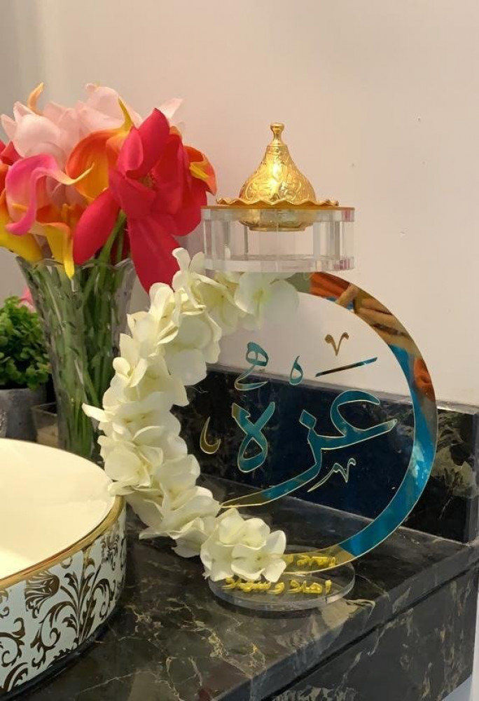مباخر اكرليك بالاسم حسب الطلبفخامة المدورمبخر مدوره تصميم جميع الموديلات حسب الطلب.اختارين الاسم وسيتم التنفيذ.تفصيل من الاكرليك مع إضافة ورد صناعي.متوفره بلونين، لون فضي، لون ذهبي.
