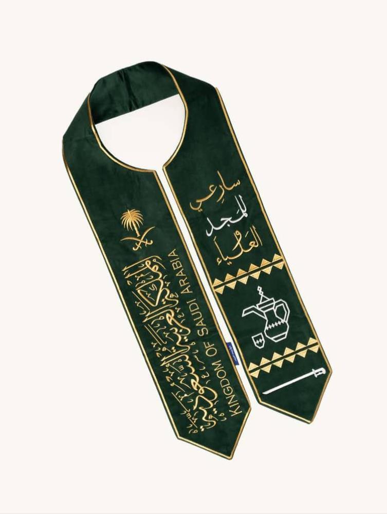 - وشاح اليوم الوطني الفاخر يجمع بين الأصالة والفخامة.