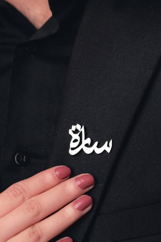 - الموديل: دبوس البدله تصميم ينحط على البدايه باي مكان تحب واضافة اسم او حرف حسب طلبك.