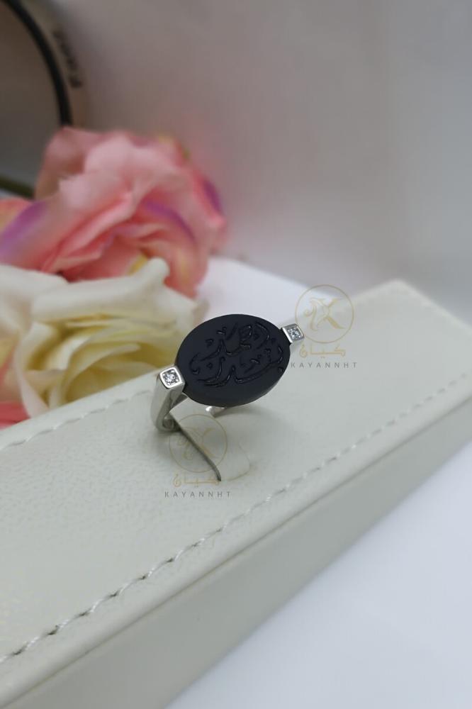 - يتم حفر الاسماء على حجر الاونكس الايطالي اسود مطفي مرصع بفصين زركون كرستال.