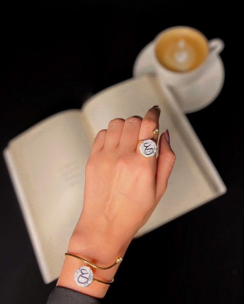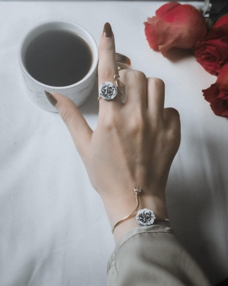 خاتم ملكي بالاسم أنيق مع اسوره ملكي بالاسم حجر سداسب