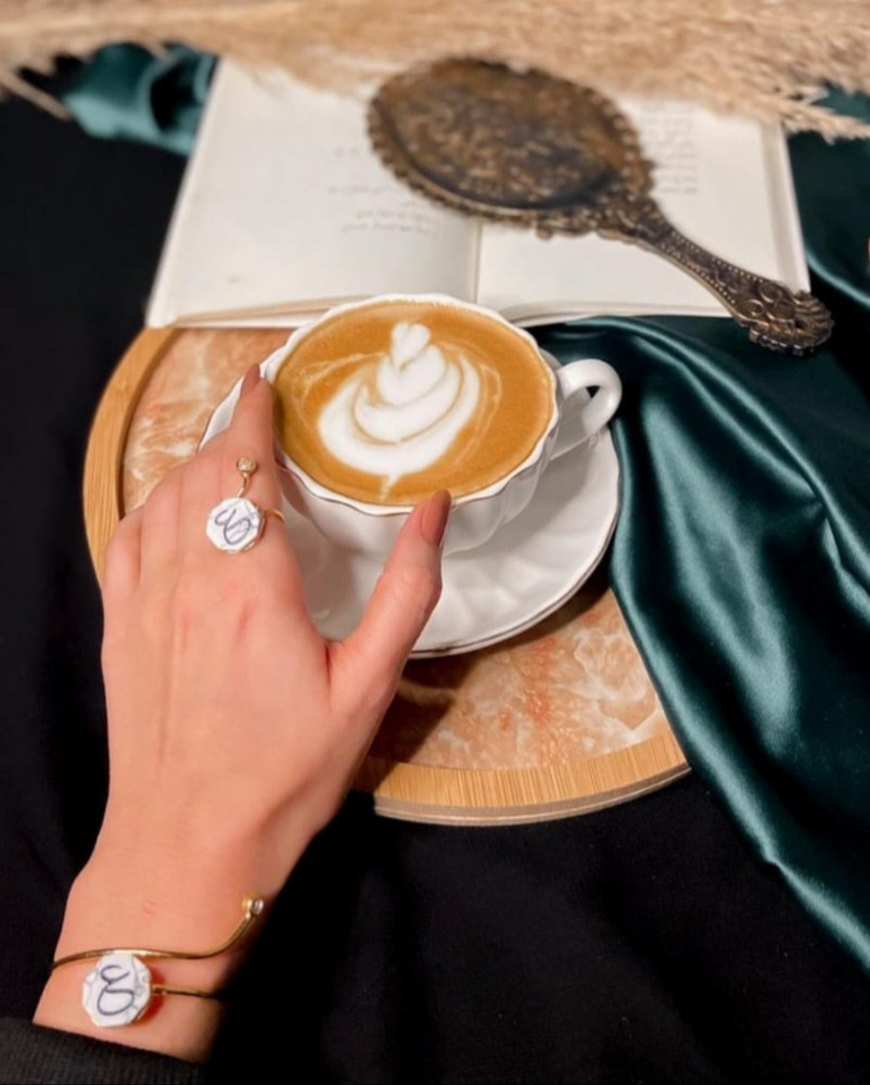 طقم نسائي من تصاميم كيان، مصنوعة حسب الطلب مطلي ذهب مع حجر كريم ،ويتميز الطقم بالشكل السداسي المميز، مع خدمة حفر الاسم حسب الطلب