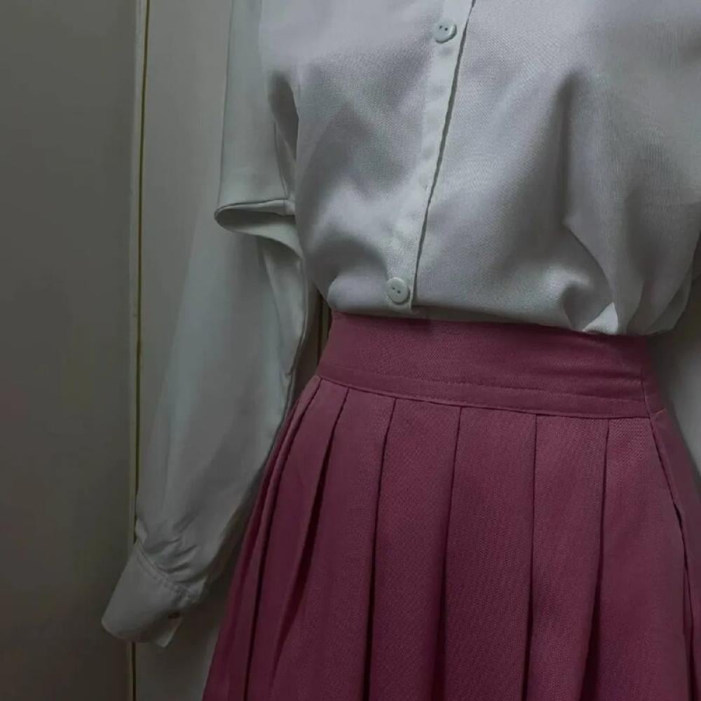 تصميم عصري يجمع بين الراحة والحشمة، بقميص أبيض نقي وتنورة كلاسيكية أنثوية.