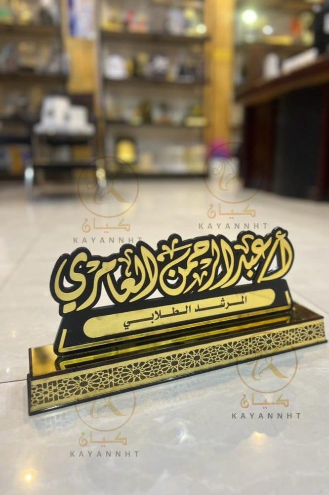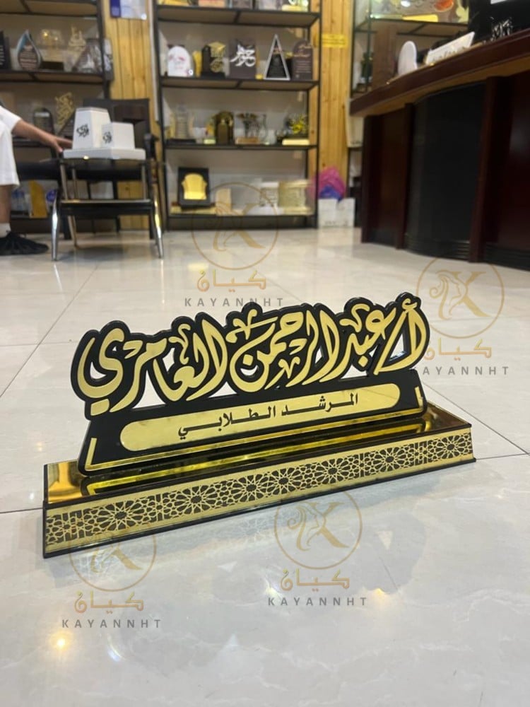 يمكننا نقش أي اسم أو شعار أو عباره على الاستاند بخطوط أنيقة، مما يجعله هدية مثالية، للمعلمين ، للتخرج، الترقية، أو أي مناسبة خاصة.