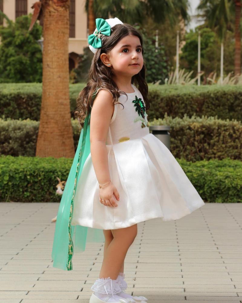 أضيفي لمسة من الفخر والأناقة لإطلالة طفلتك مع فستان اليوم الوطني السعودي للبنات، المصمم خصيصاً للاحتفالات الوطنية.