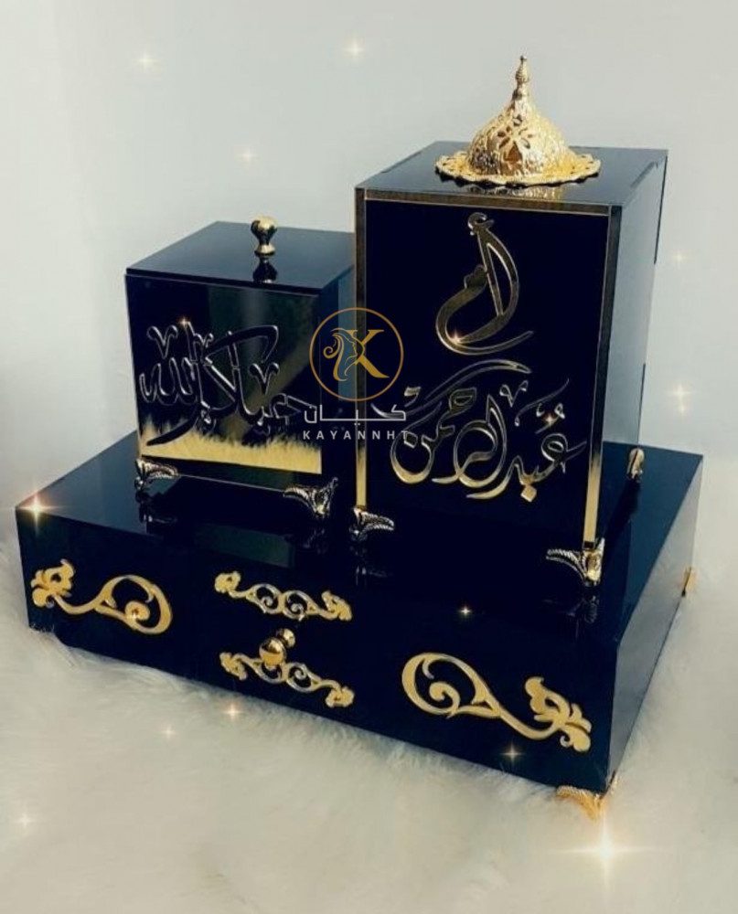 - مكوناته: طقم صينية المبخر مكون من. صينيه مع درج. مبخره باسم عل الطلب. علبة بخور باسم أو عباره عل الطلب