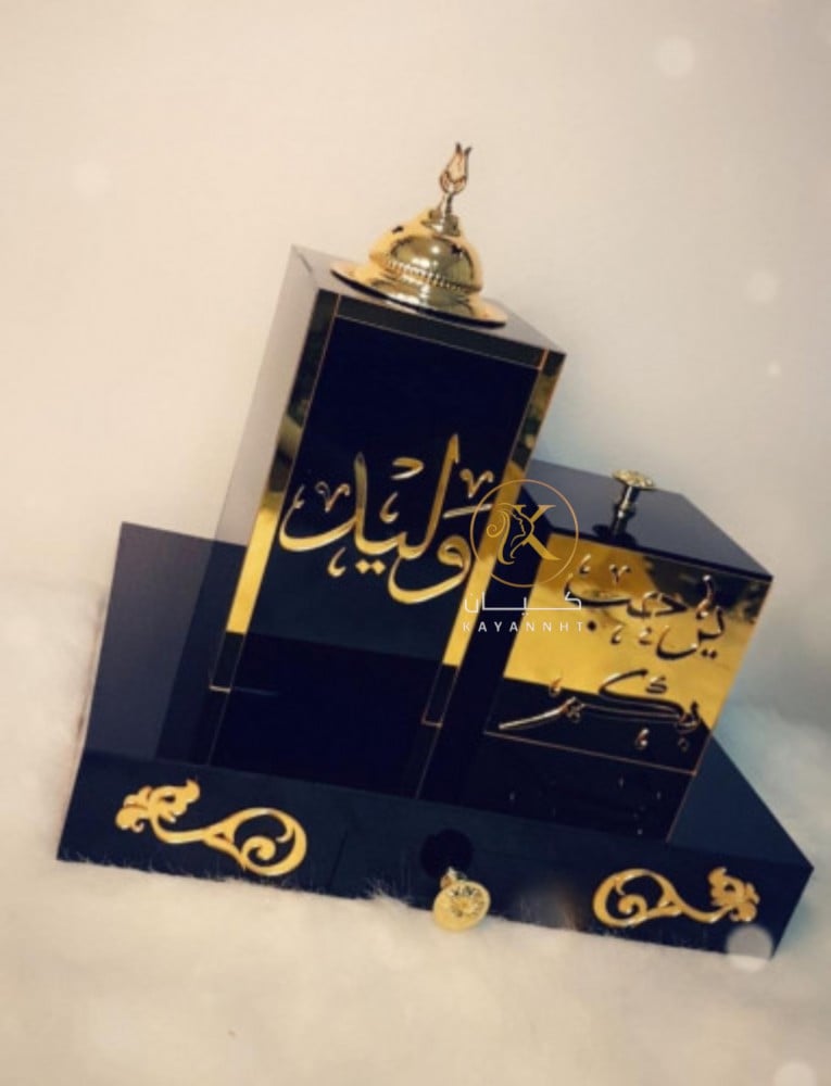 - صناعته: طقم مبخرة مصنوع من الاكرلك السميك بالوان متعدده مع قص ليزر عل الطلب