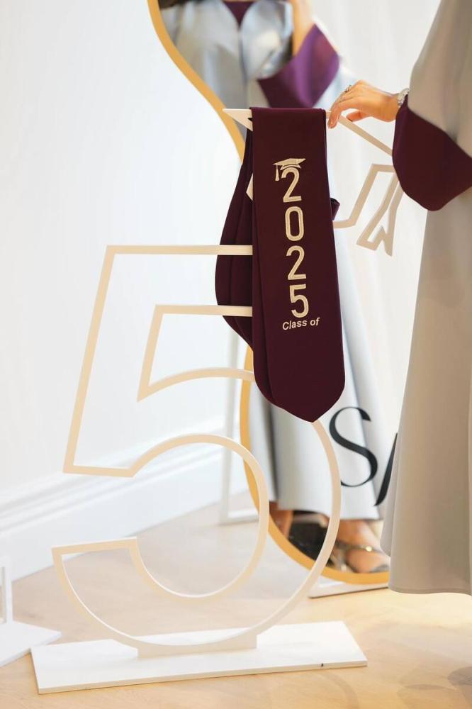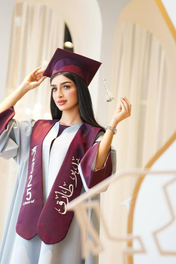 - الطقم يتكون من عباية مع شال مع قبعة تخرج تصميم متفرد.
