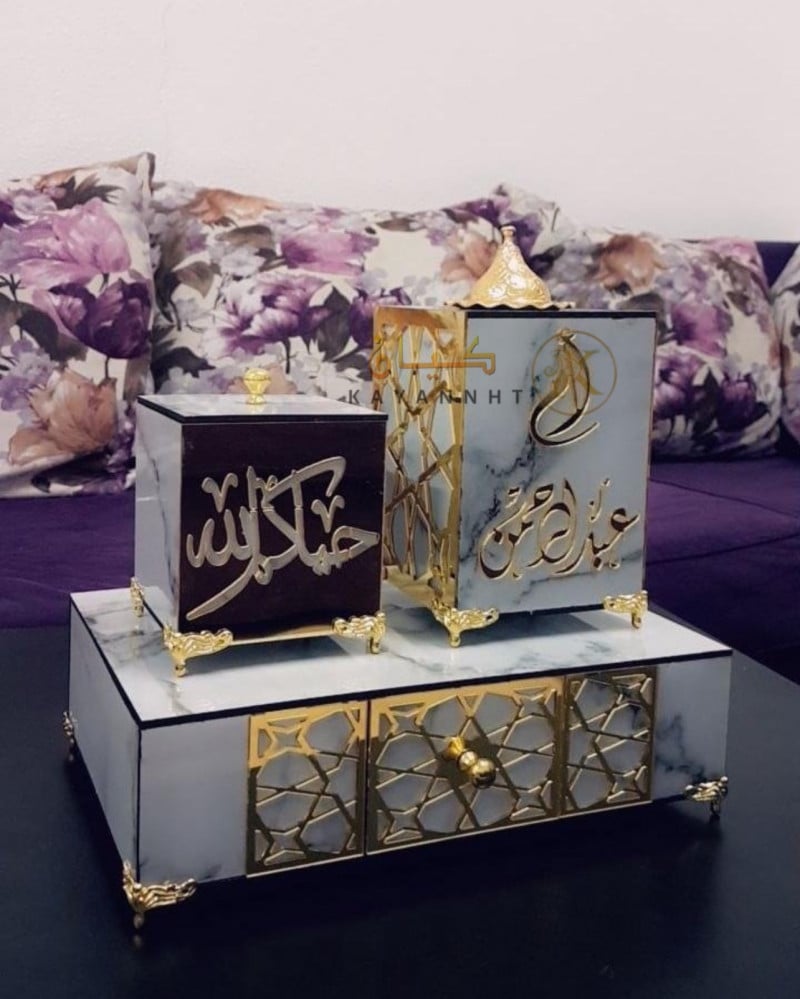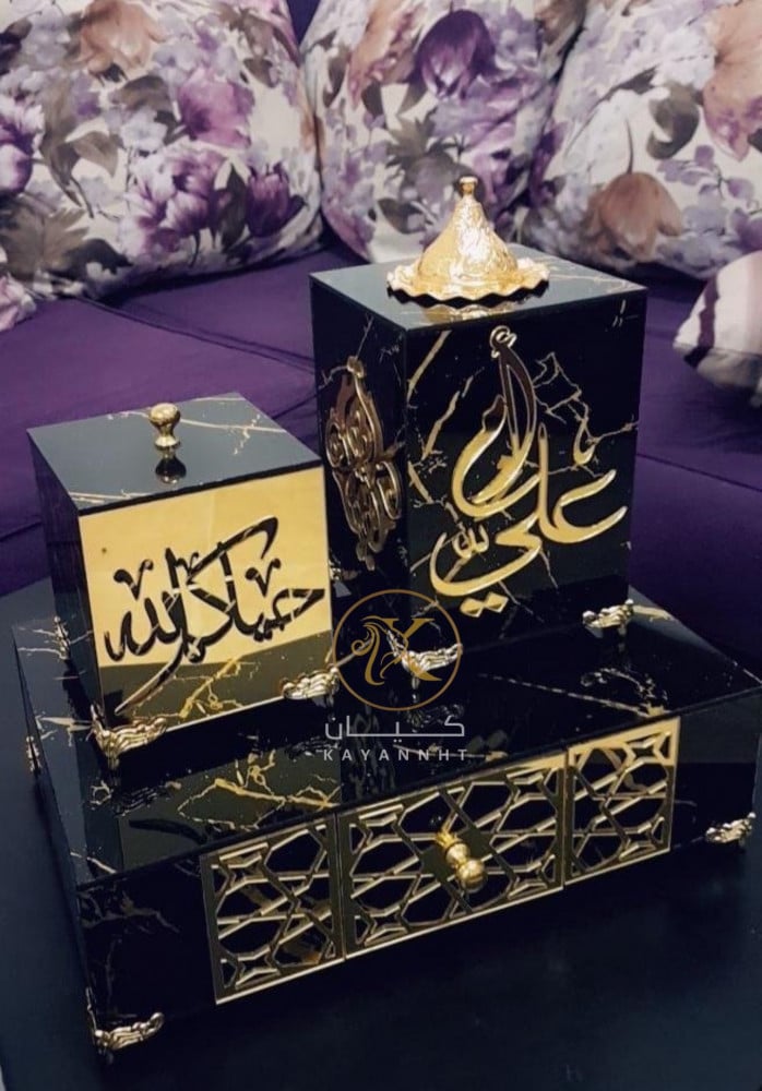 - صناعته: طقم مبخرة مصنوع من الاكرلك السميك بالوان متعدده مع قص ليزر عل الطلب