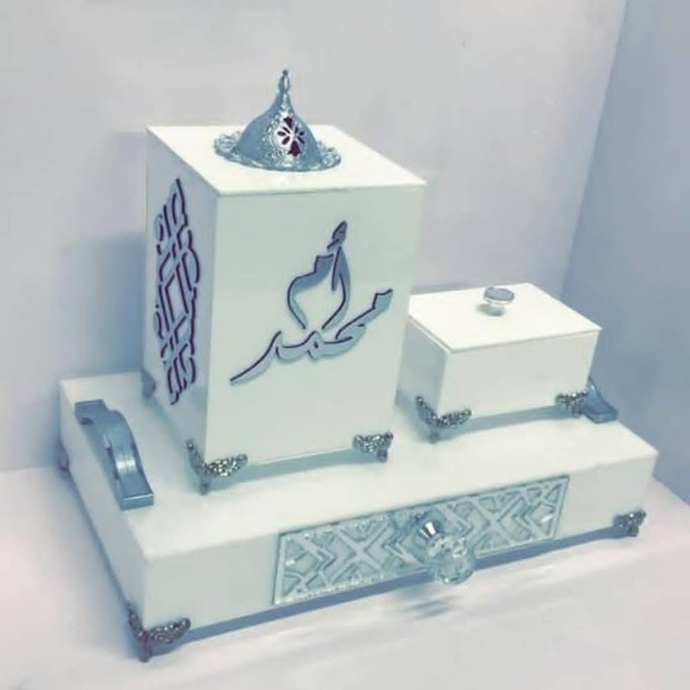 - مكوناته: صينيه مع درج. مبخره باسم عل الطلب. عليه بخور باسم أو عباره عل الطلب