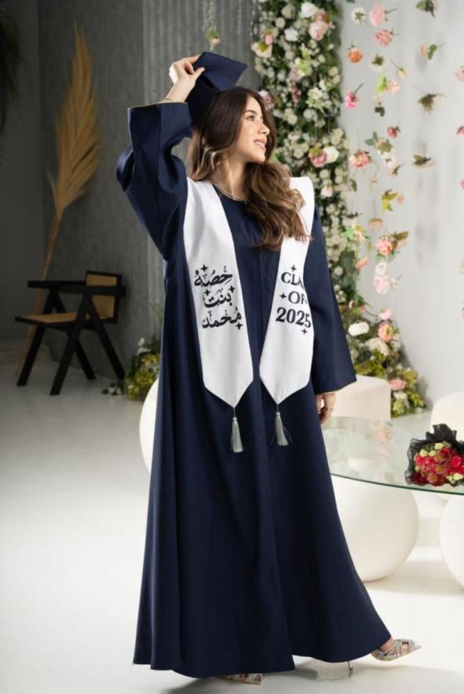 - مكوناتهاء يتكون من عباية مع قبعه مع شال تخرج تصميم انيق.