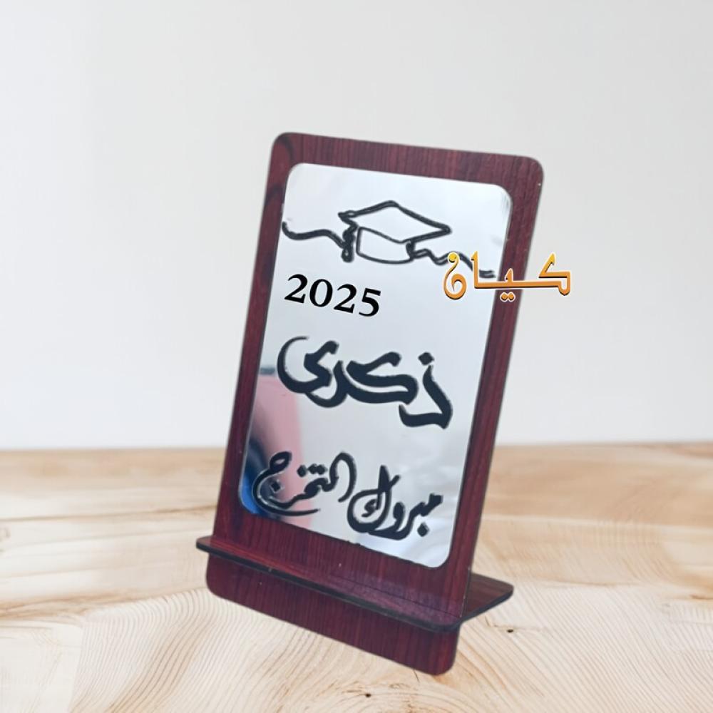دروع تخرج بلون خشبي مع فضي أنيق وفاخر عبارة عن قطعة تذكارية خشبية مصممة لاحتفال الخريجين لهاذ العام.