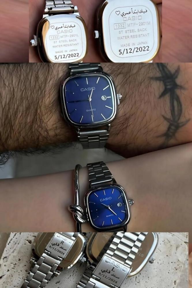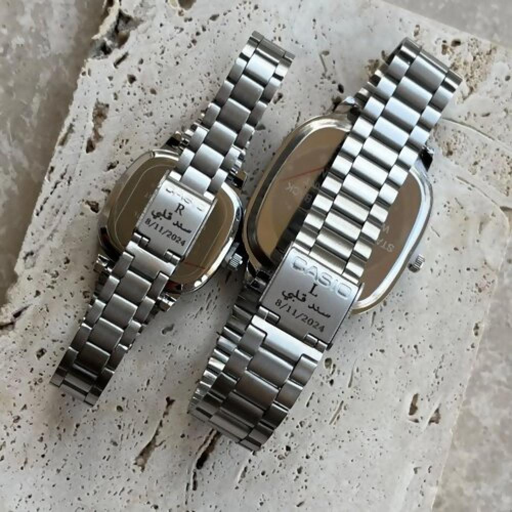 طقم كاسيوم ساعات بالاسم للعروسين او الشريكين بالآسم او الحروف هديه مثاليه للاعراس ولخطوبه.