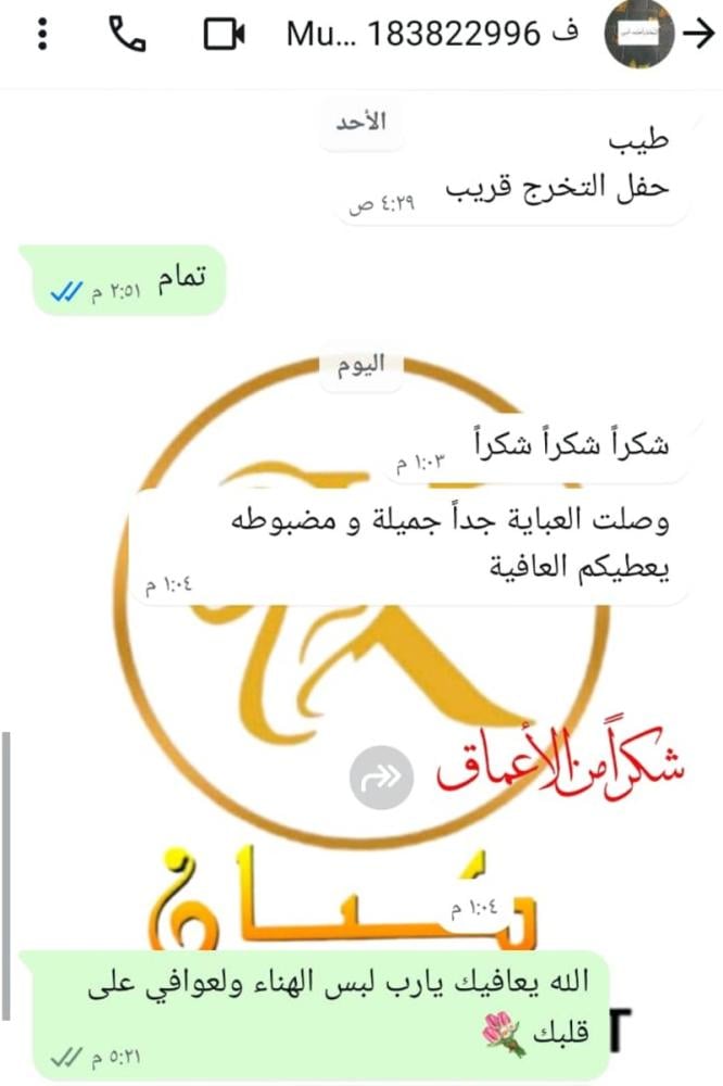 - مكوناتهاء يتكون من عباية مع قبعه مع شال تخرج تصميم انيق.