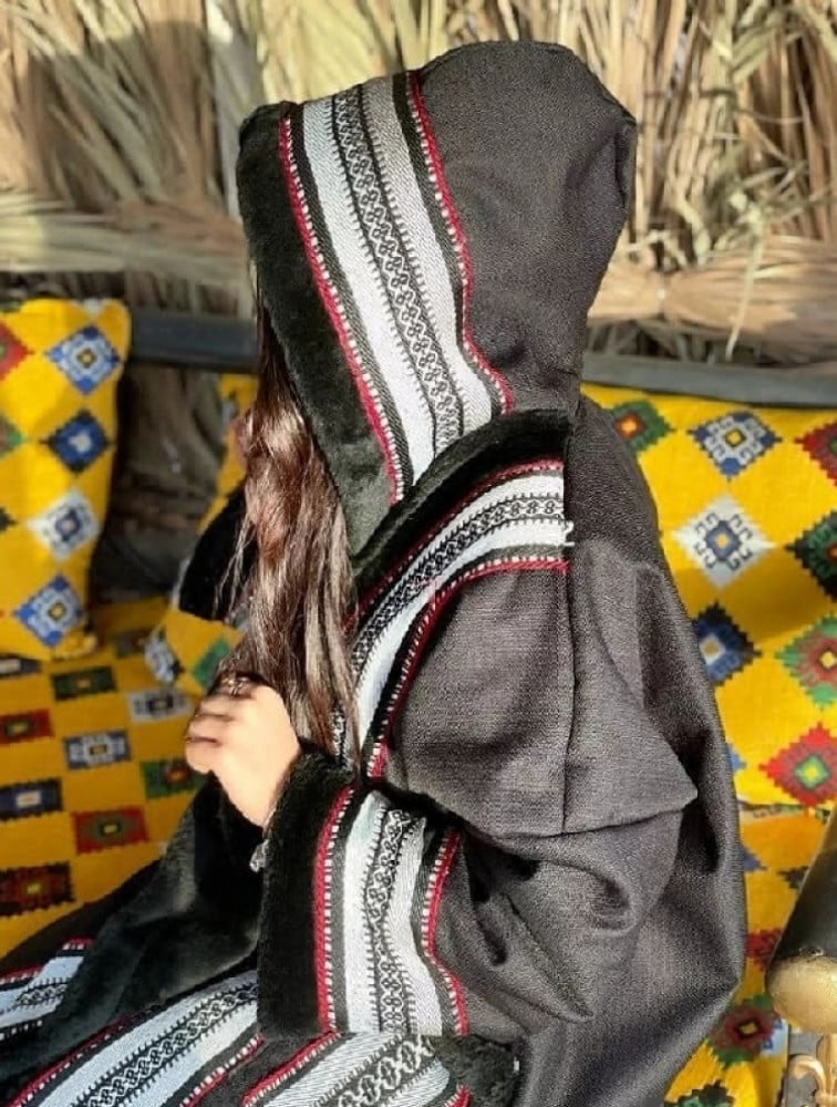 فروه نسائي كلاسيكي بتصميم السدو الملكي لون اسود