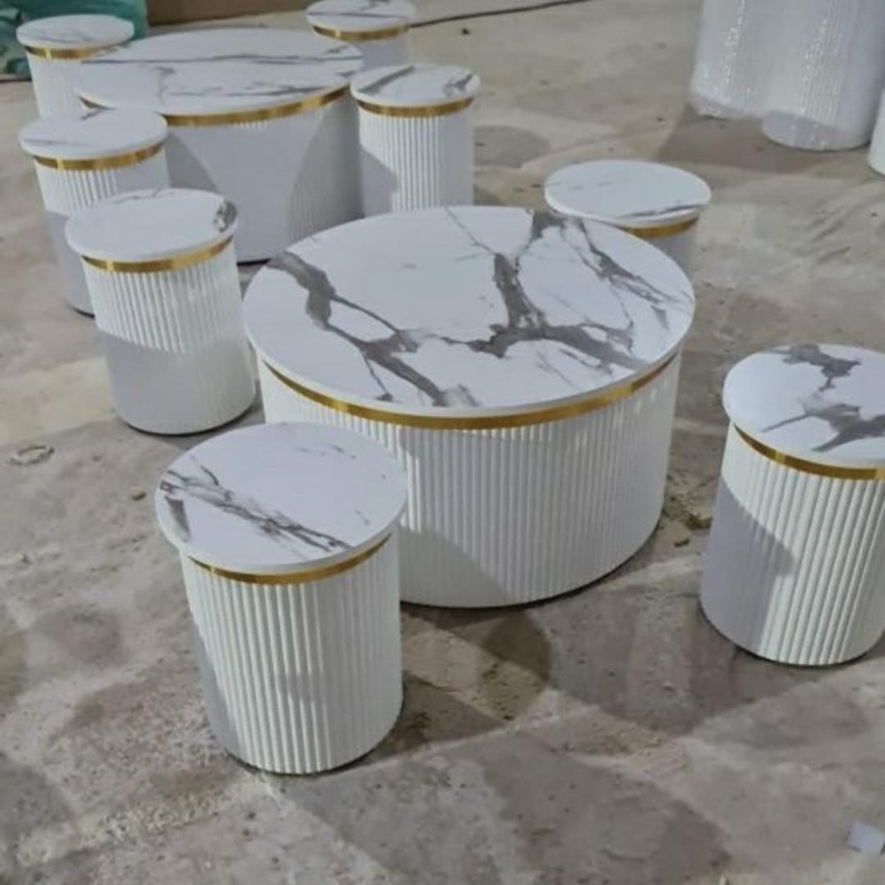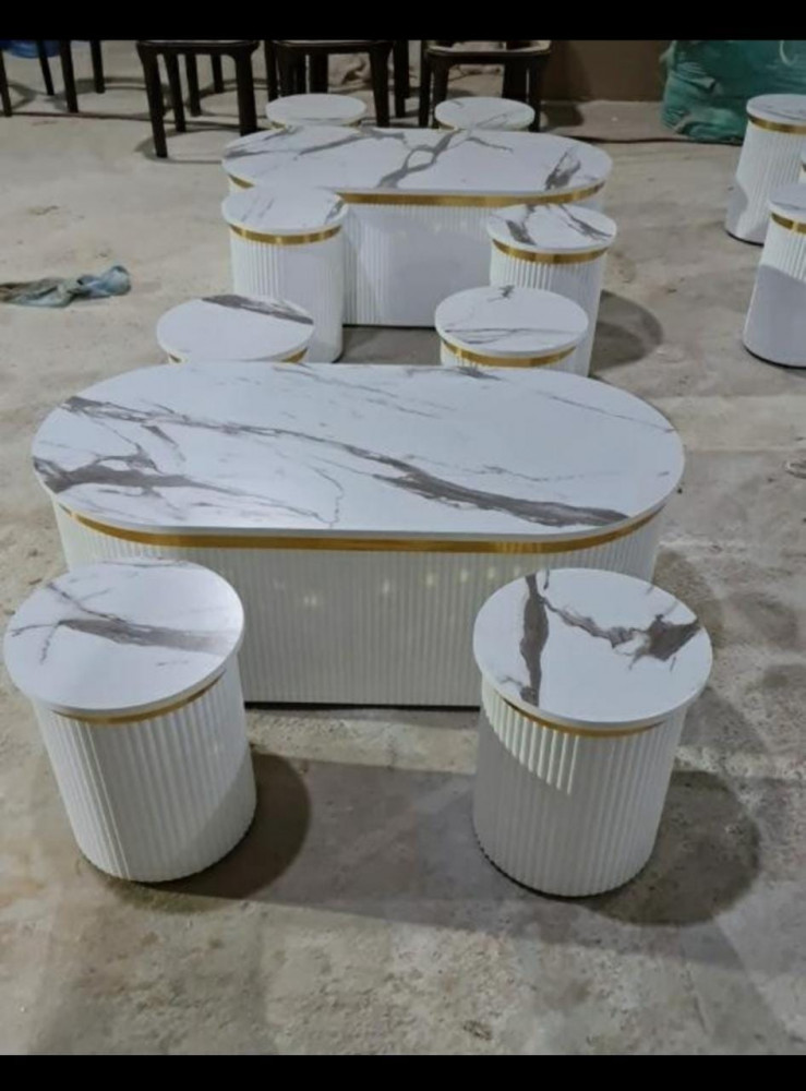 1) طاولة رئيسية(4) طاولة جانبيةالخامه بديل الرخامطاوله الكبيرة قطرها 90 سم الارتفاع 50 سماللخدمات4القطر 35 سم الارتفاع 55 سمرسوم الشحن والتوصيل عند الاستلام
