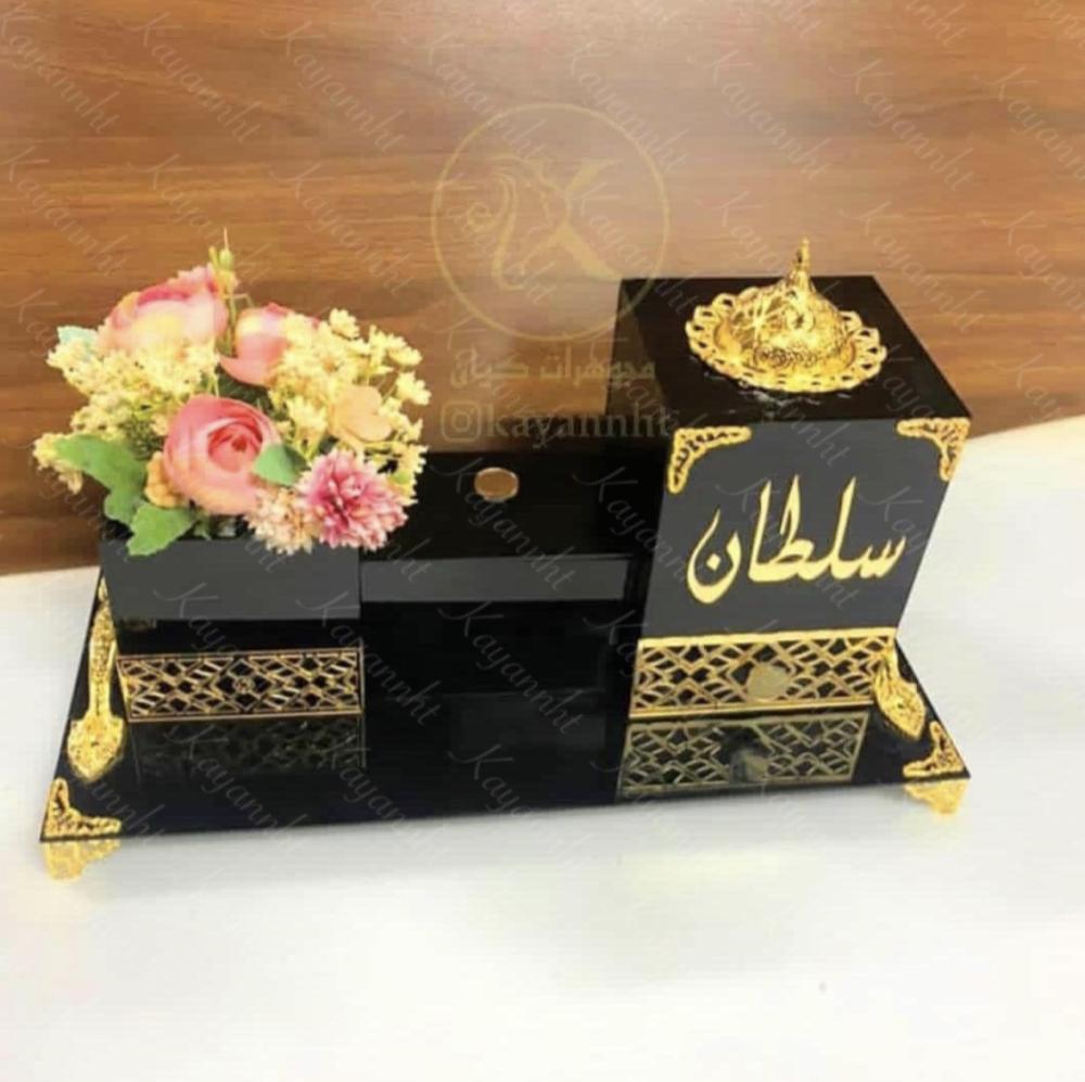 طقم مباخر بالاسم مباخر بالاسم تصميم انيق وفخم مع الاسم وصندوق بخور مع اضافة فازة ورد