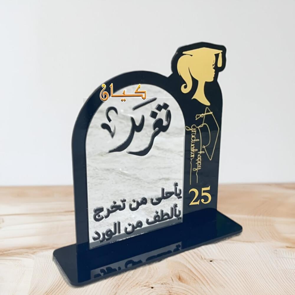 استاند تخرج باسم فاخر لون اسود فاخر هديه تذكارية تقدم خاصه للمتخرجين.