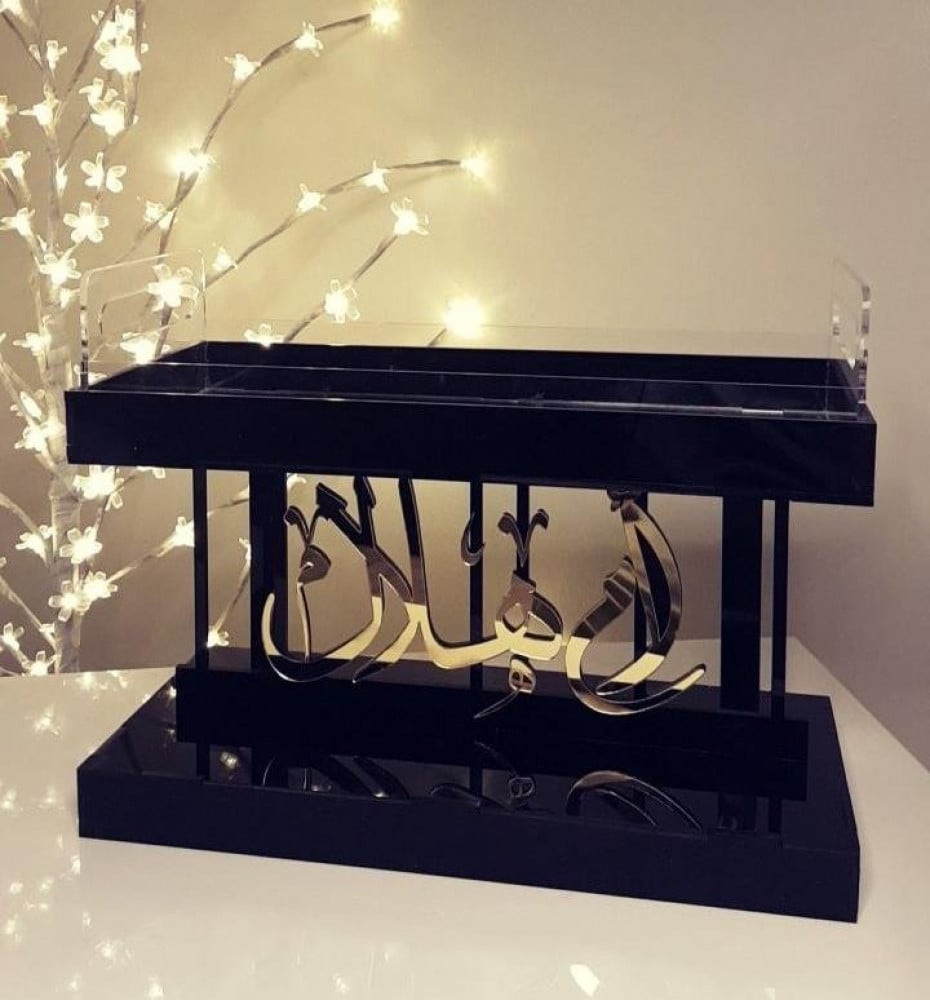 جديدنا استاند التقديم يمكن استفاده منه باشكال كثيره مثل، استاند توزيعات. استاند عطور. صينية تقديم العصائر. مفتوح الطلب عليه الصوره مقتبسه من اعمالناء، ممكن اضافت عبارت اخرى مثل حيكم الله، يامرحباً، ارحبو بمجلس ام محمد، اوعباره تعجبكم او اسم ممكن تنفيذها حسب الطلب، متوافر البكسات الصغيره بلاسم والقواعد زرتنا البركه و غطى الاستكانات بلاسم حياكم الله حبايبي يسعدني خدمتكم.
