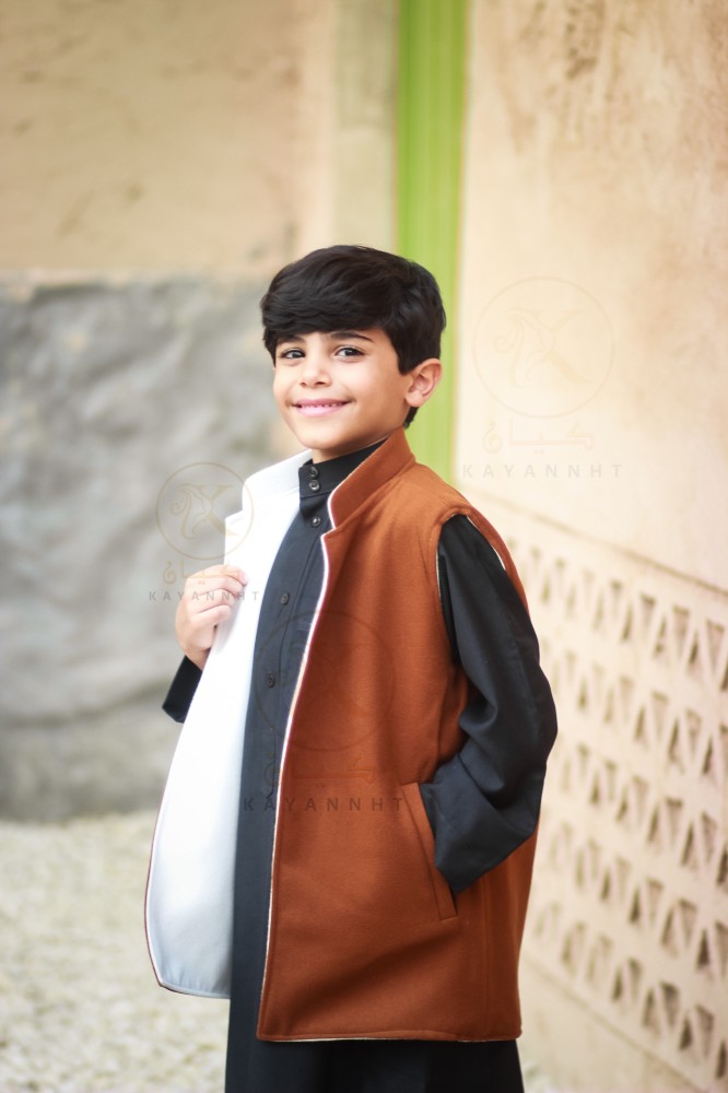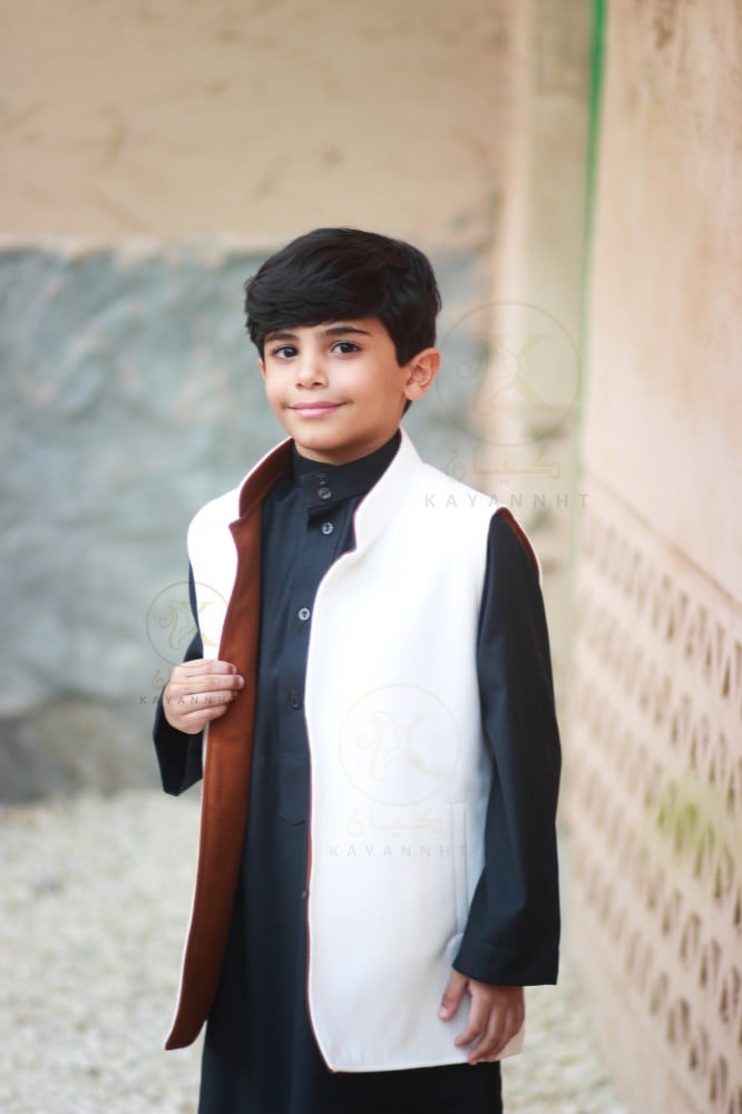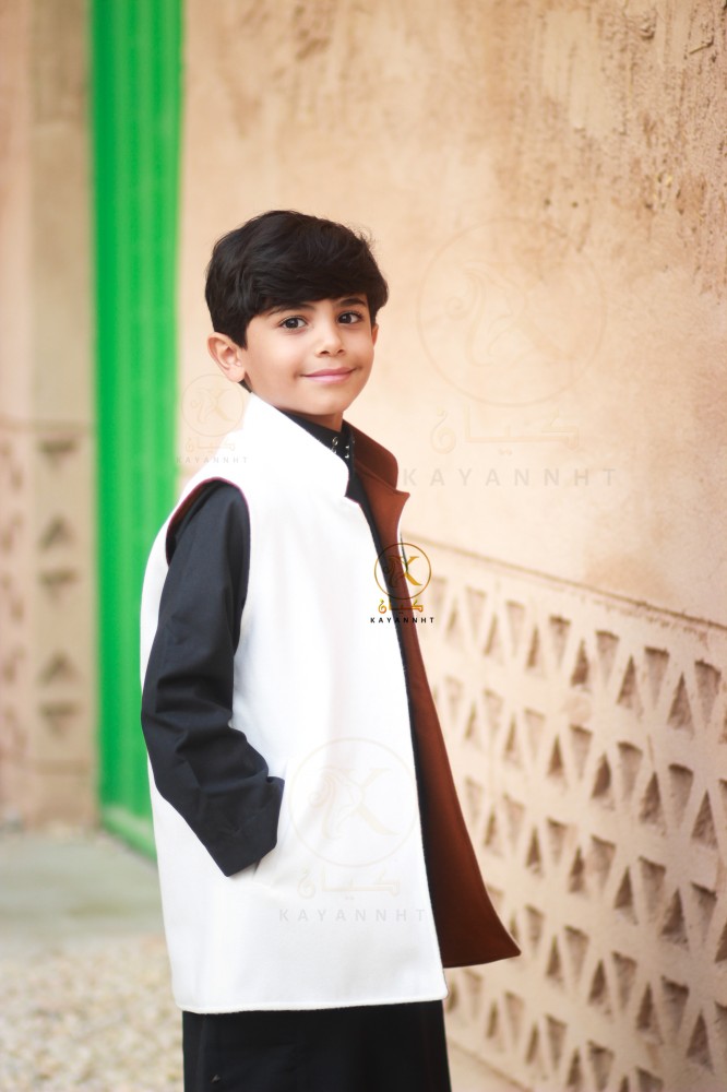 سديري دبل فيس اطفال لون بني و ابيض ينلبس ع الجهتين أجمل مايمكن تقديمه لاميرك الصغير.