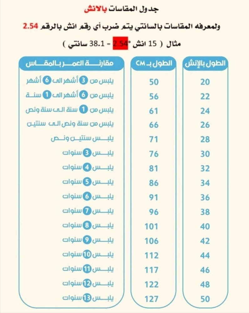 - في حال كان عندك متر يرجى قياس طول الطفل بالانش او بالسنتيمتر وكتابته في الملاحظة.