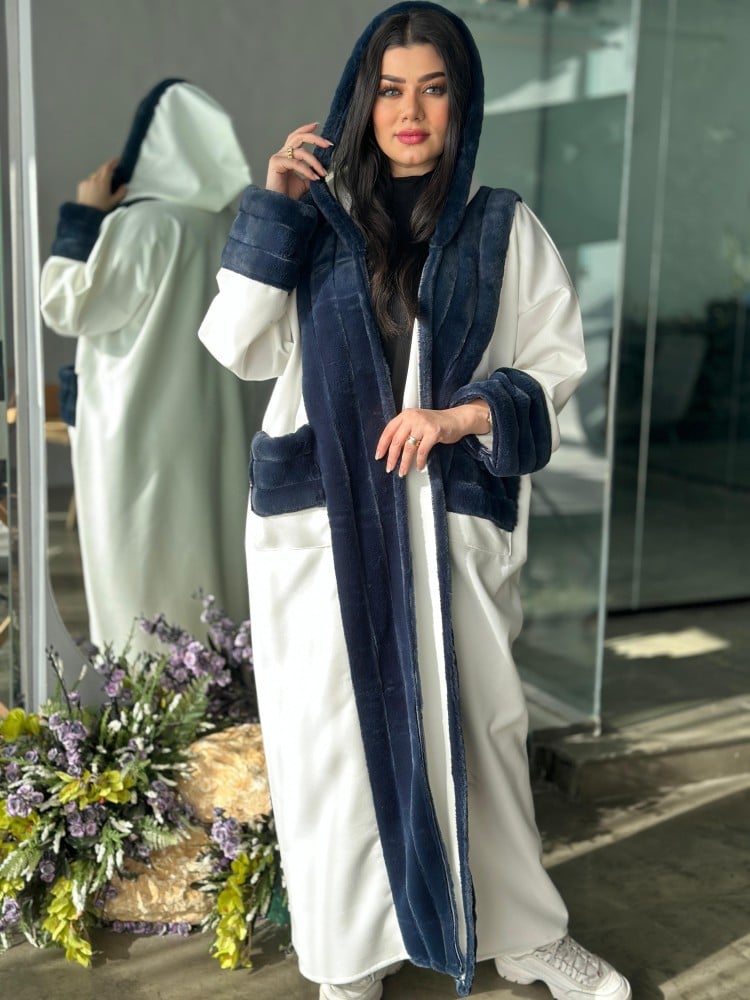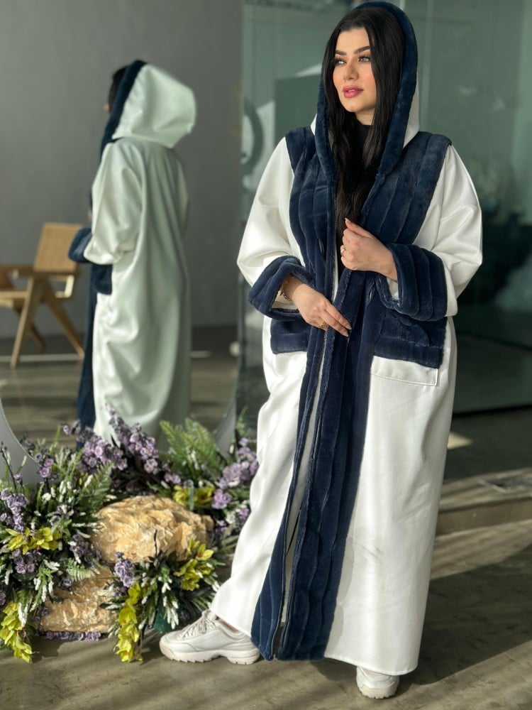 الخامة شامواه لون ابيض مقارب إلى السكري مع فرو ارنب داخلي بلونها المحلي المطفي مقارب إلى الؤصاصي ولاسود