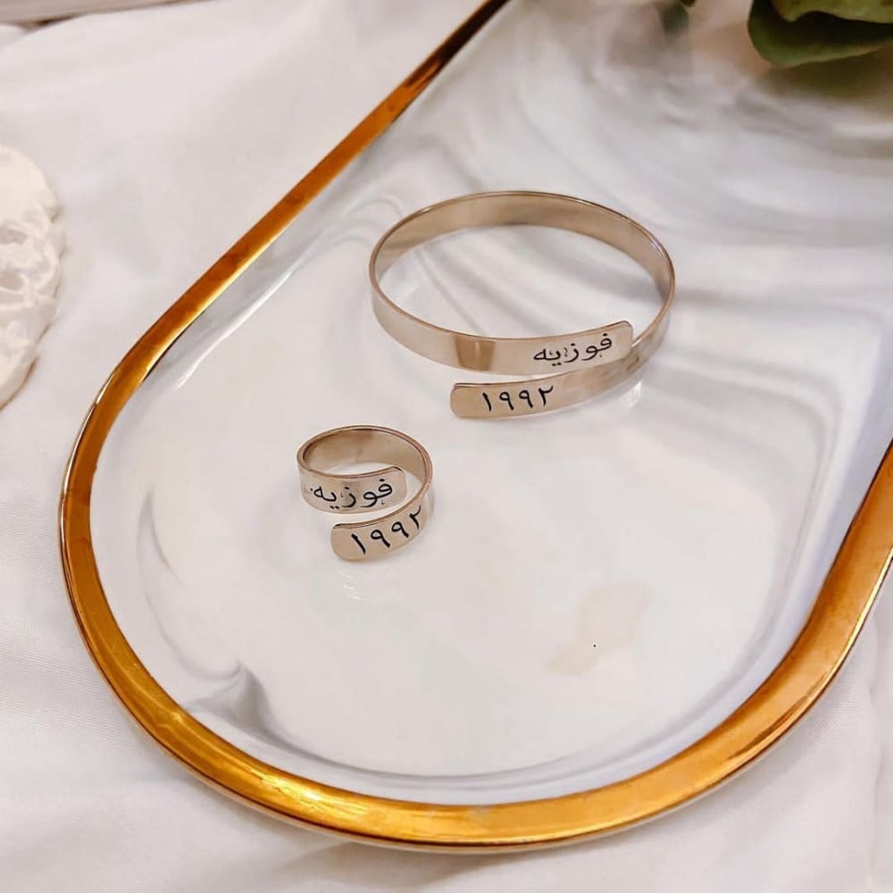 مع خاتم تصميم اسمك مع تاريخ ميلادك او تاريخ الخطوبه