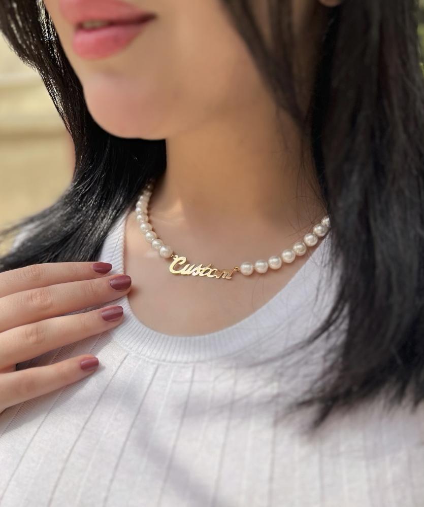 تميزي بارتداء سلسال من اللؤلؤ الصناعي يحمل اسمك بشكل منحوت مطلي بالذهب أو الفضةمعلومات المنتج :مطلي بالذهب عيار 21 قيراط. منحوت بدقة واحترافية عالية. يأتي مغلف بعلبة هدايا انيقه وكيس كيان.