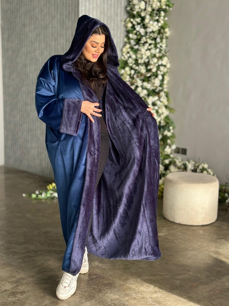فروه نسائيه جوانب مخمل شامواه لون كحلي صناعة سعودية