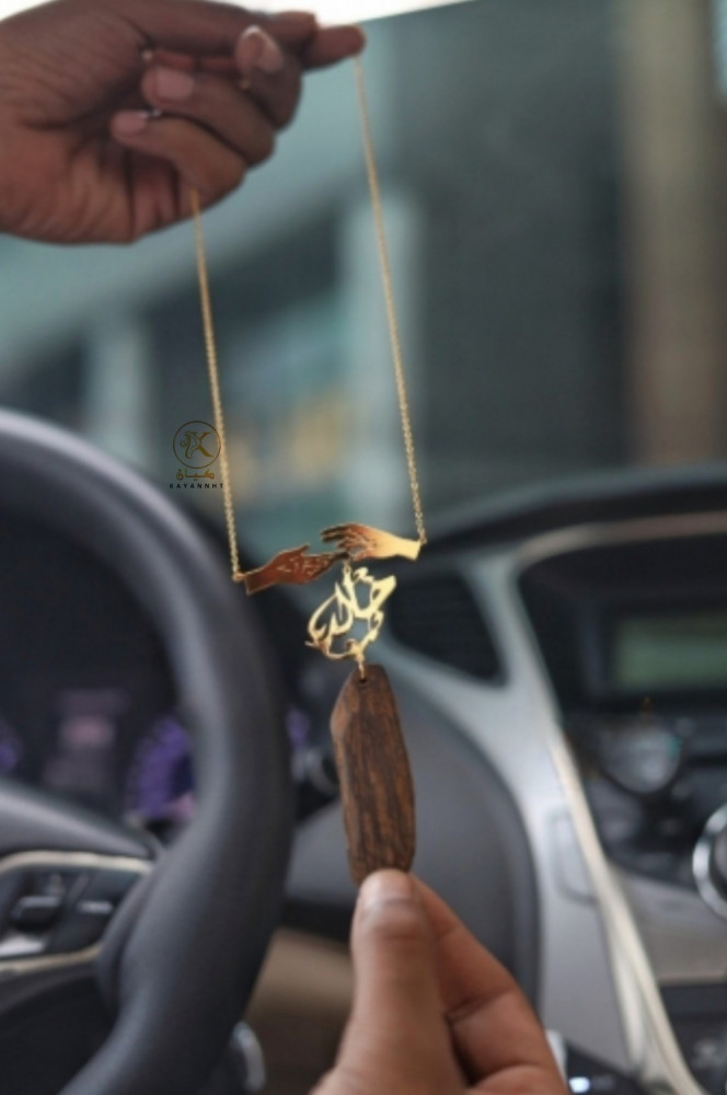 تعليقة سياره تصميم ماسكين يد بعض مع عود موركي انيق