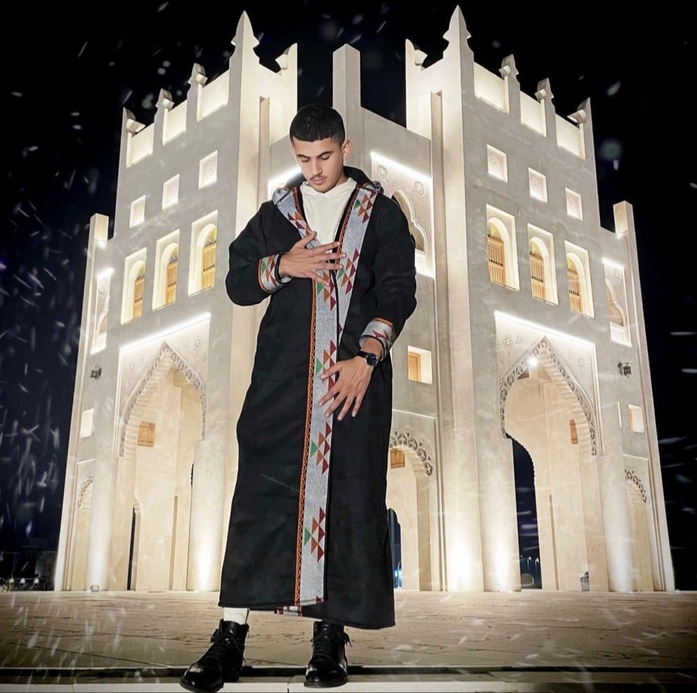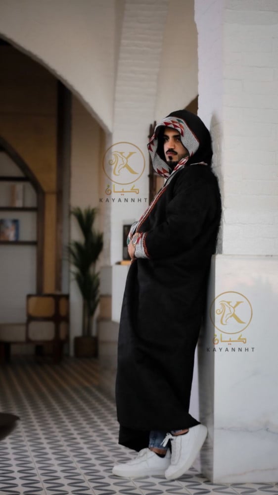 فروة مخملية سوداء بنقشة السدو البدوية المتألقة